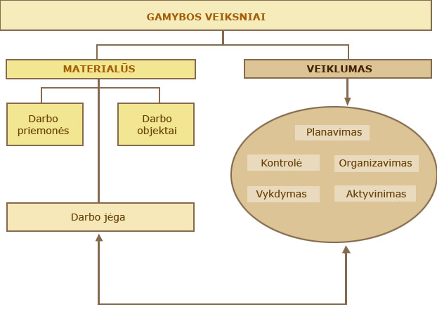 Gamybos veiksniai lemia, kaip bus pasiektas  vienas pagrindinių įmonės veiklos tikslų – pelnas. Natūralu, kad mums reikia žinoti, kaip tas pelnas atsiranda, nuo ko priklauso jo dydis. Visus veiksnius, nuo kurių priklauso įmonės sėkmė, galime suskirstyti (tiesa, gana sąlygiškai) į dvi grupes: materialius ir veiklumo (2.2 pav.).