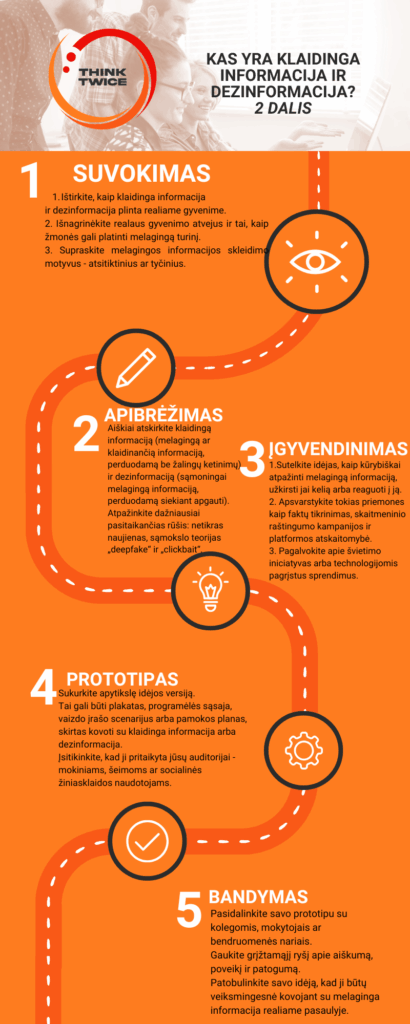 - Generuoti idėjas, kaip kūrybiškai aptikti ir neutralizuoti klaidinančią informaciją.
