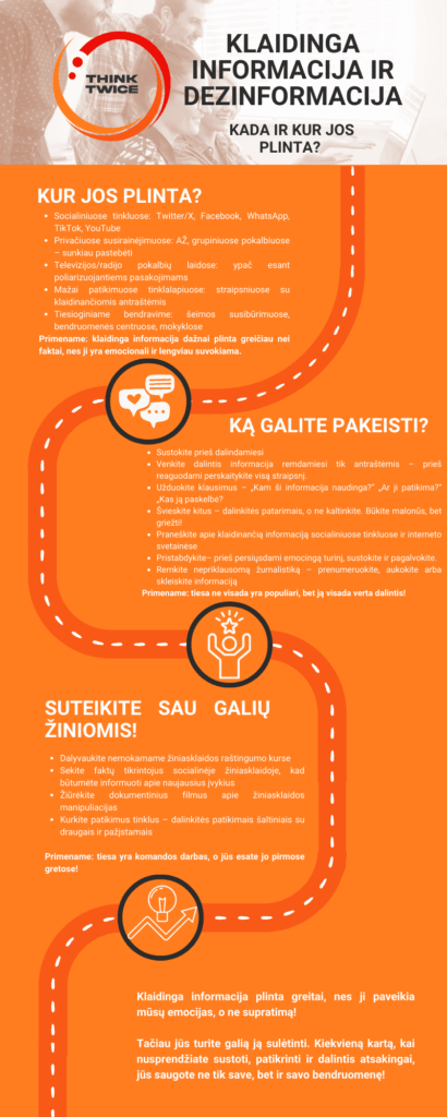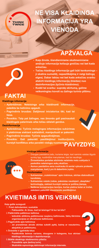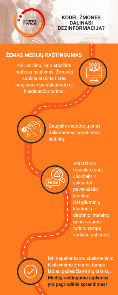 Suprasdami, kas yra klaidinga informacija, kas ją skleidžia, kodėl žmonės ja dalijasi ir kur ji plinta greičiausiai, galime saugiau ir atsakingiau veikti internete.